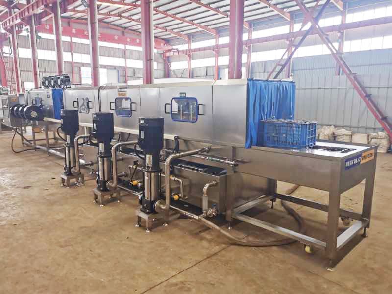 周轉(zhuǎn)筐洗筐機(jī)能夠進(jìn)行清洗,該設(shè)備的清洗一般分為三個(gè)階段:一段為熱堿水,二段為熱清水,三段為自來(lái)水。周轉(zhuǎn)筐...